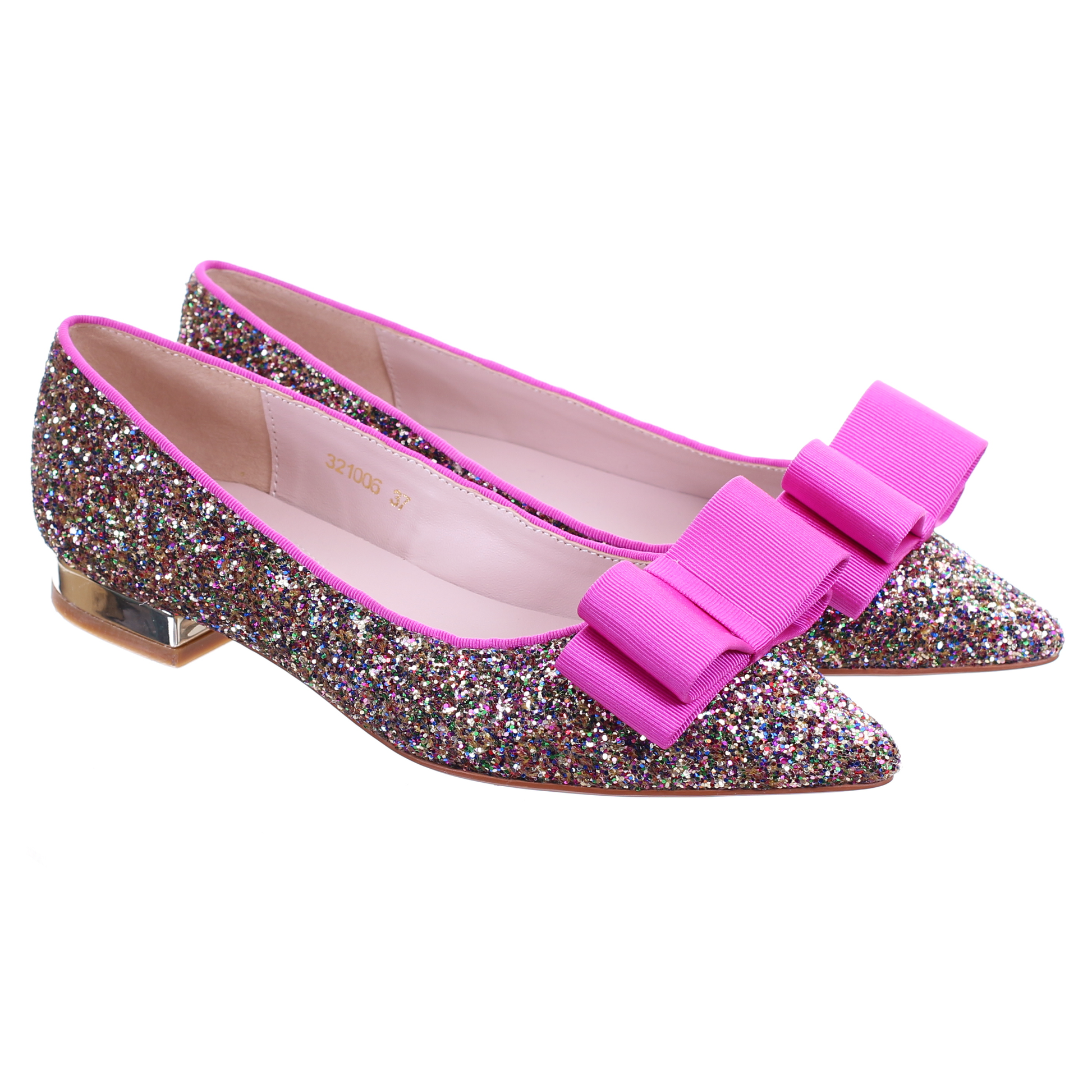 閃粉尖頭蝴蝶結芭蕾舞鞋(桃色)