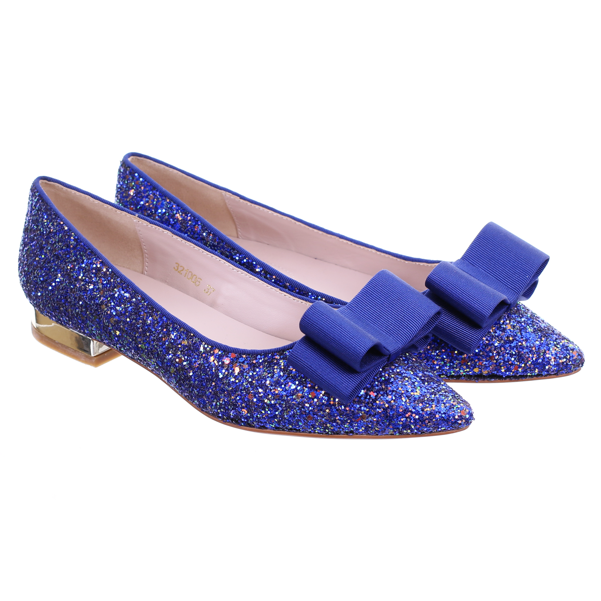 閃粉尖頭蝴蝶結芭蕾舞鞋(藍色)