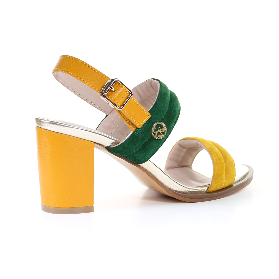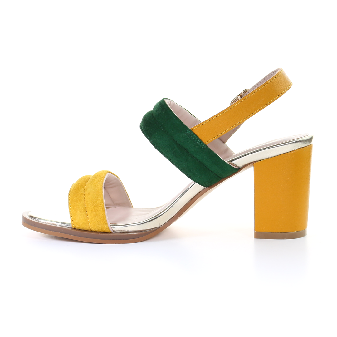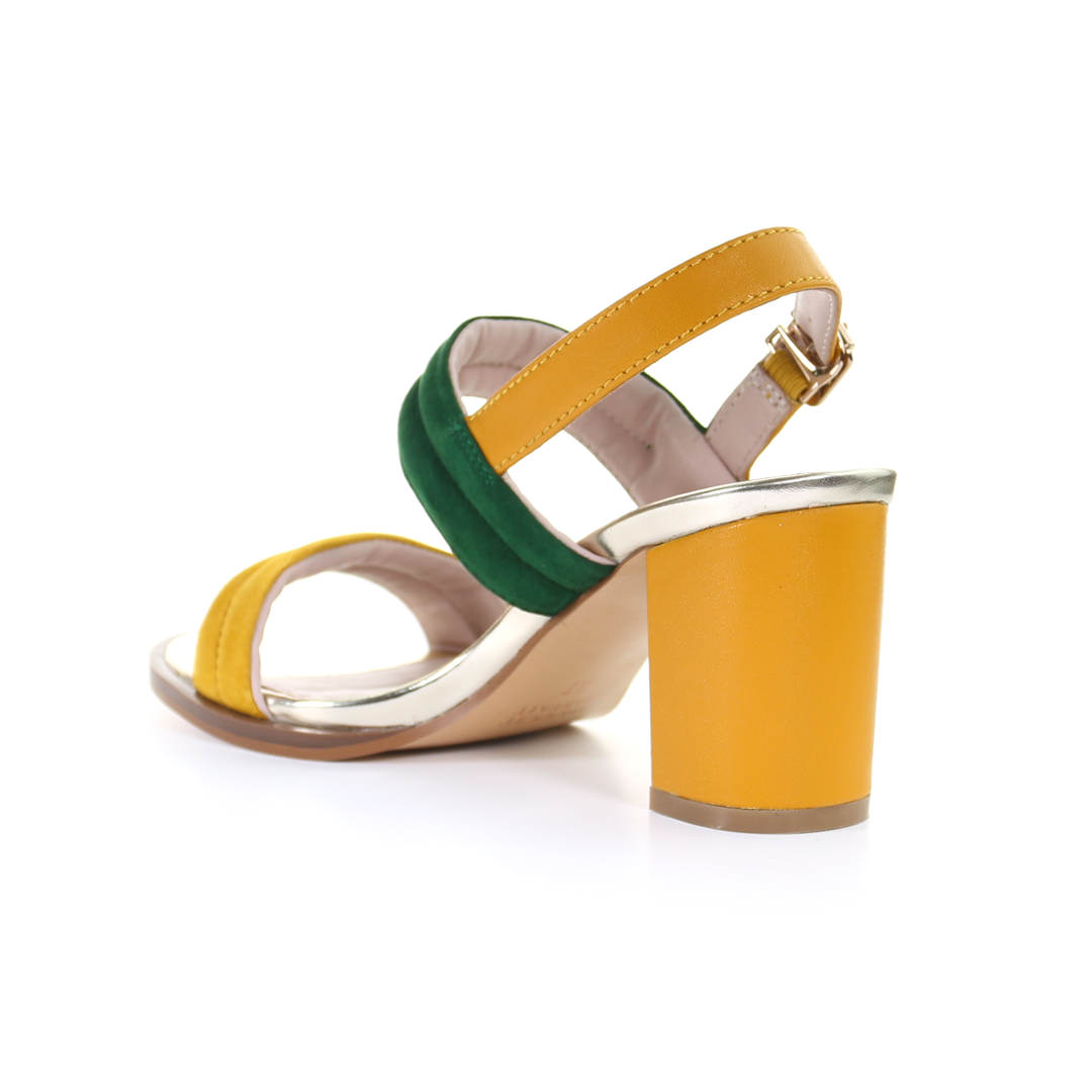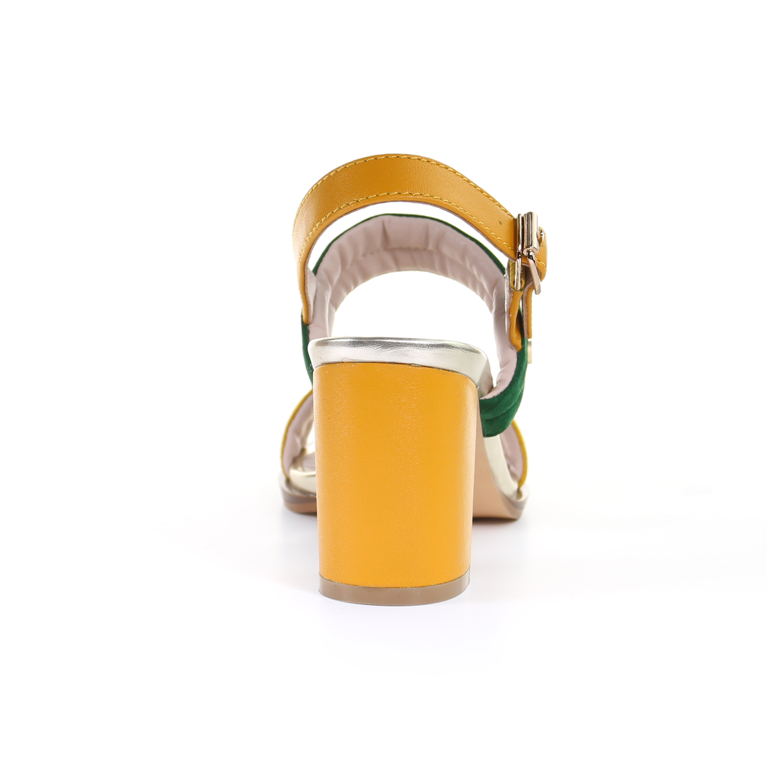 雙繫帶7.5cm粗跟涼鞋-芥末色