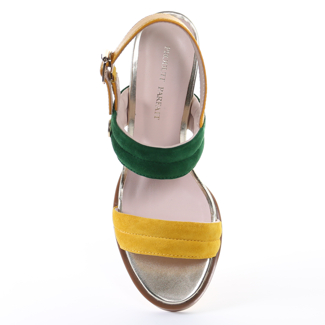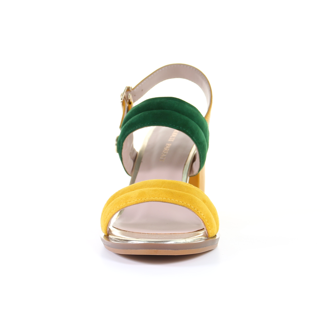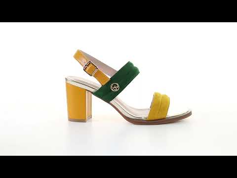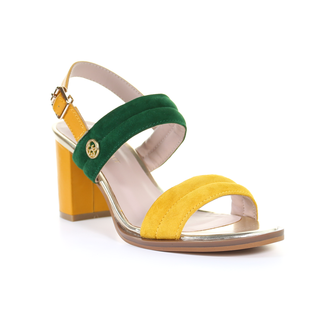 雙繫帶7.5cm粗跟涼鞋-芥末色