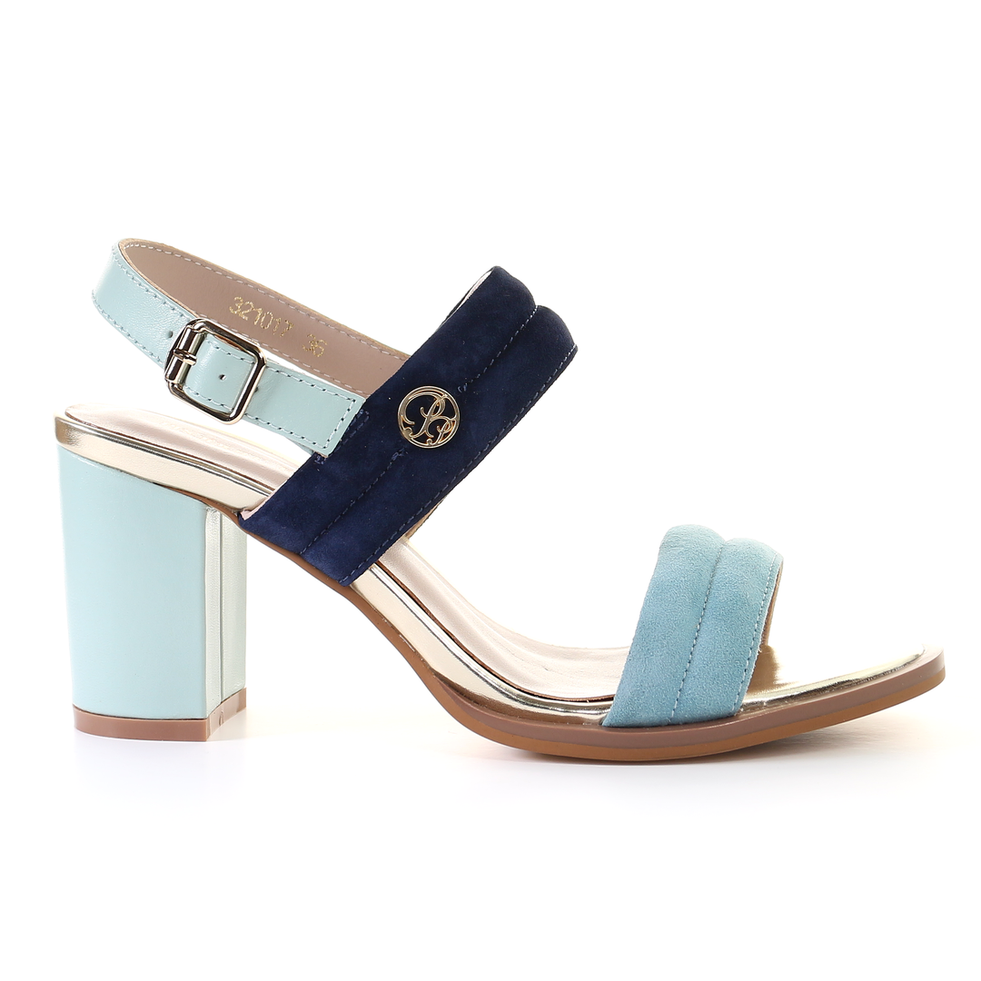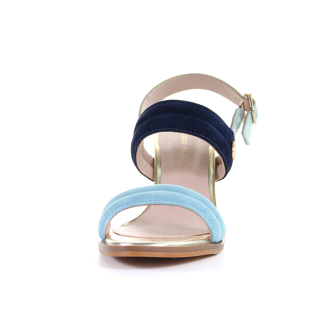 雙繫帶7.5cm粗跟涼鞋-藍色