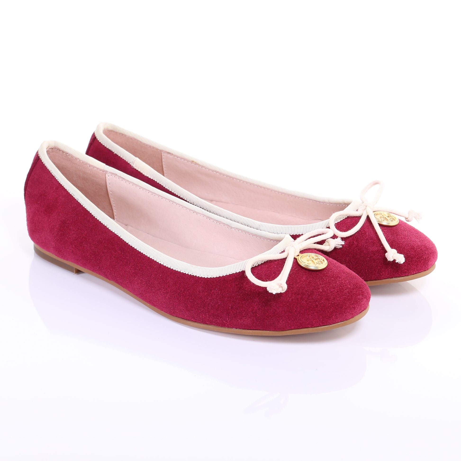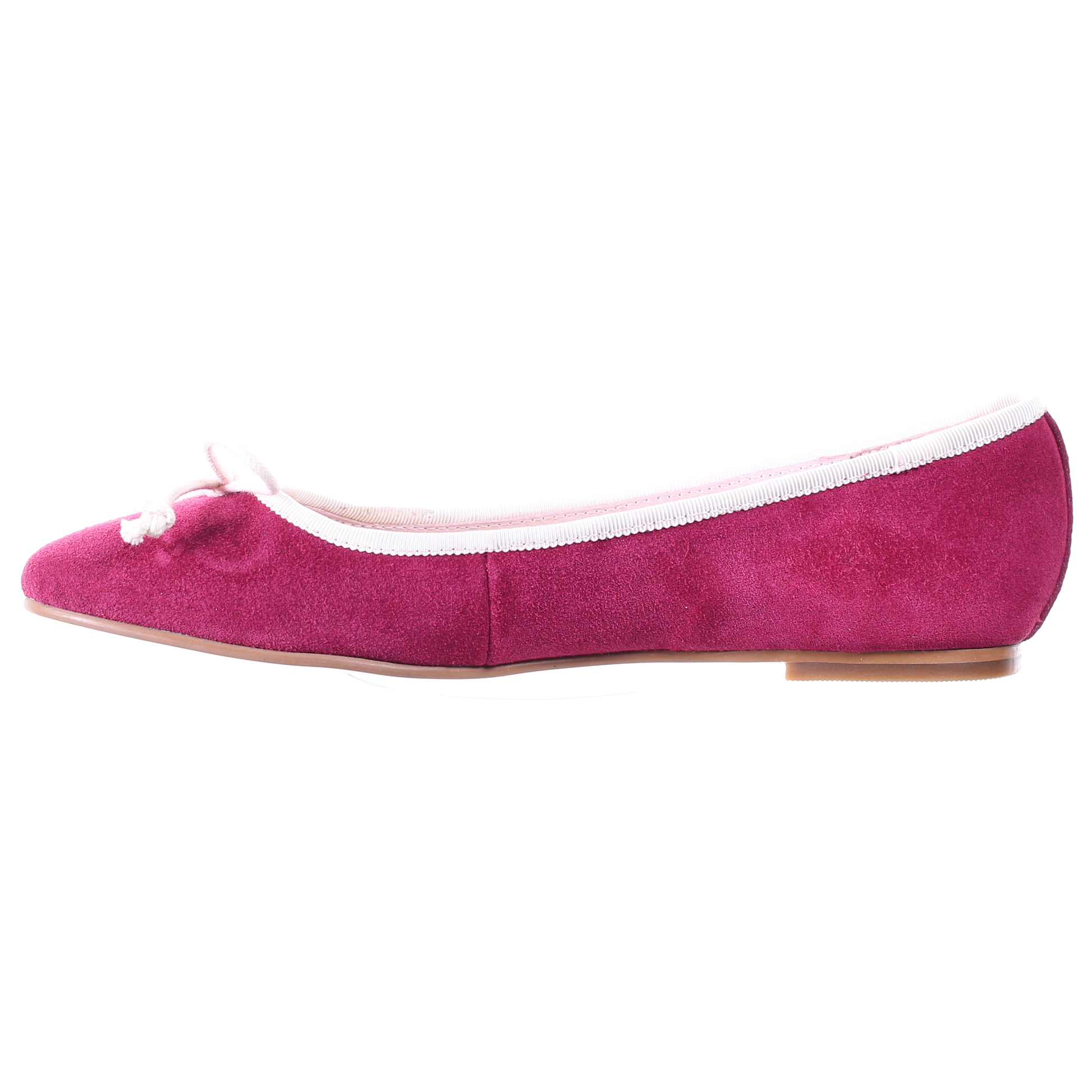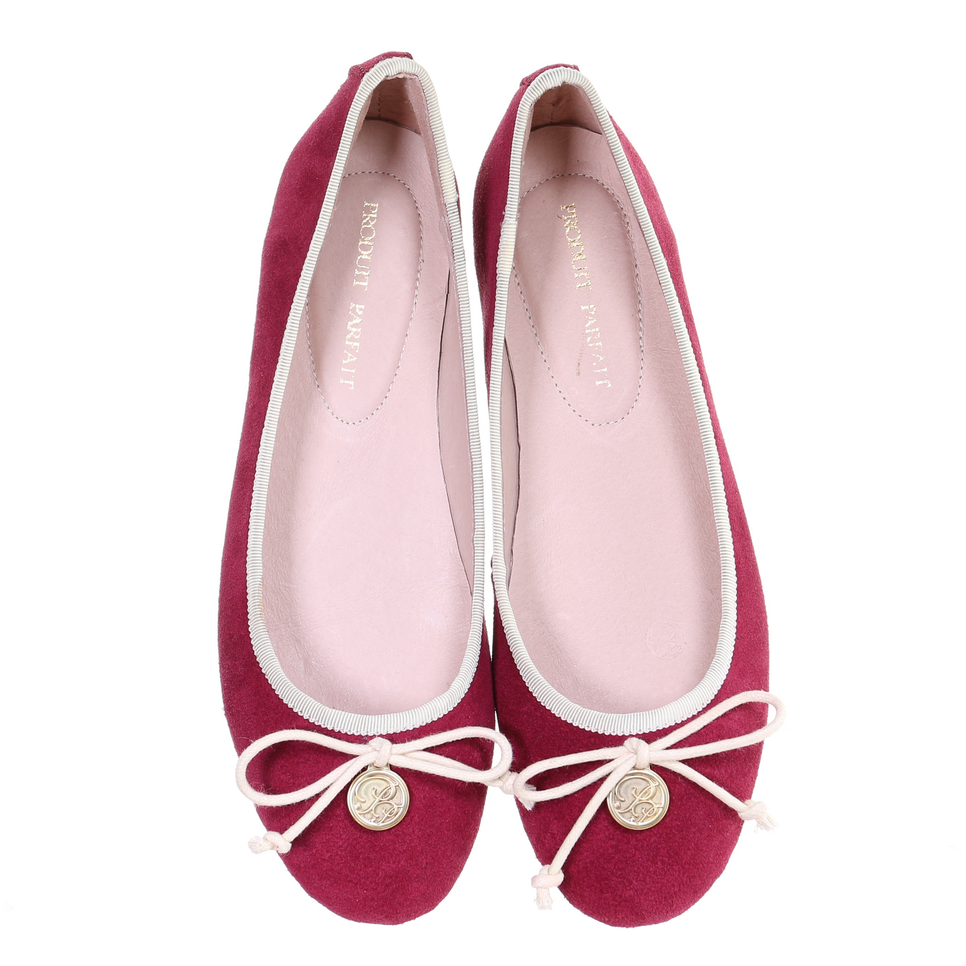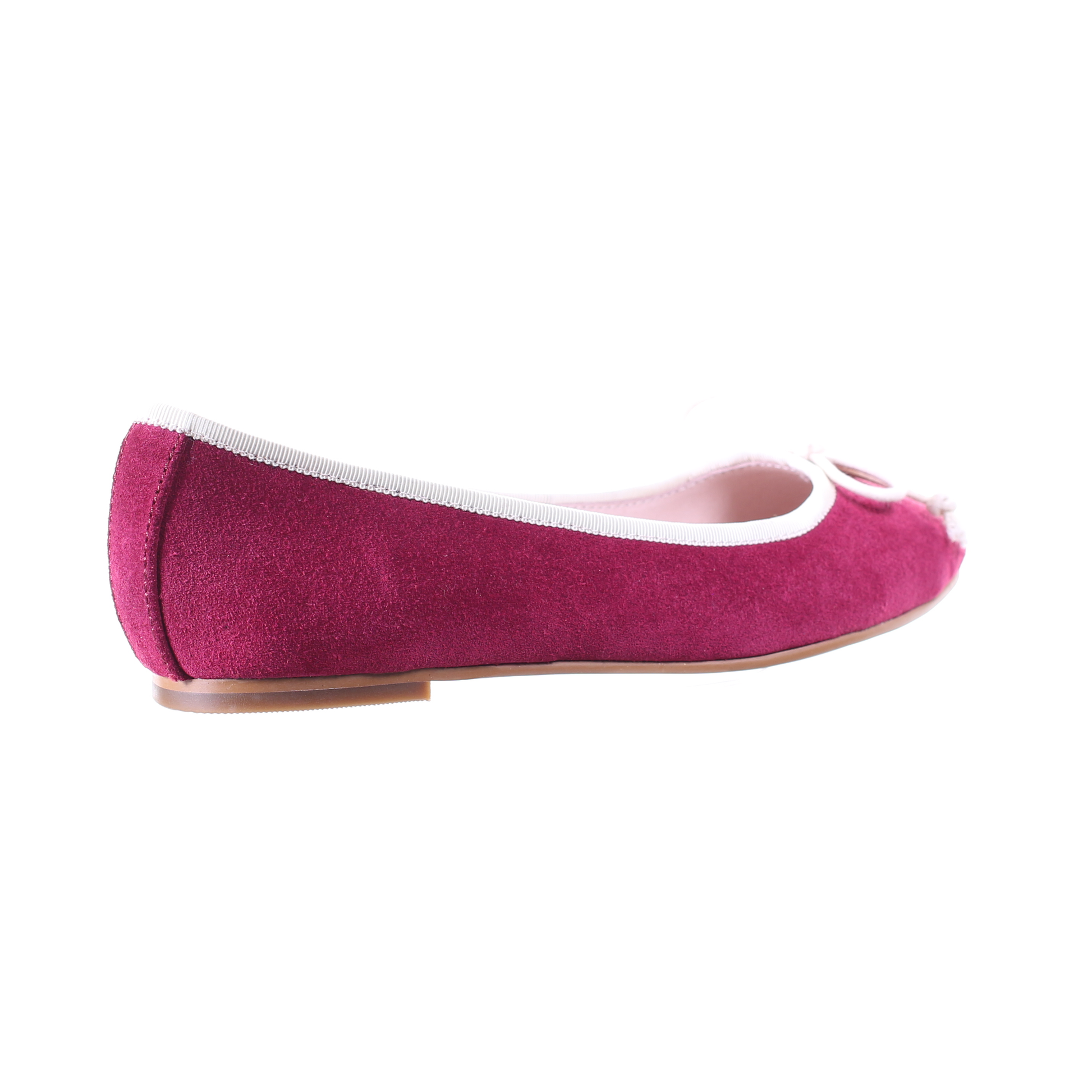 蝴蝶結絨面革芭蕾舞鞋(洋紅色)