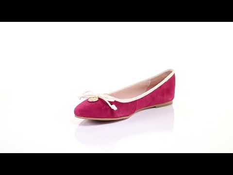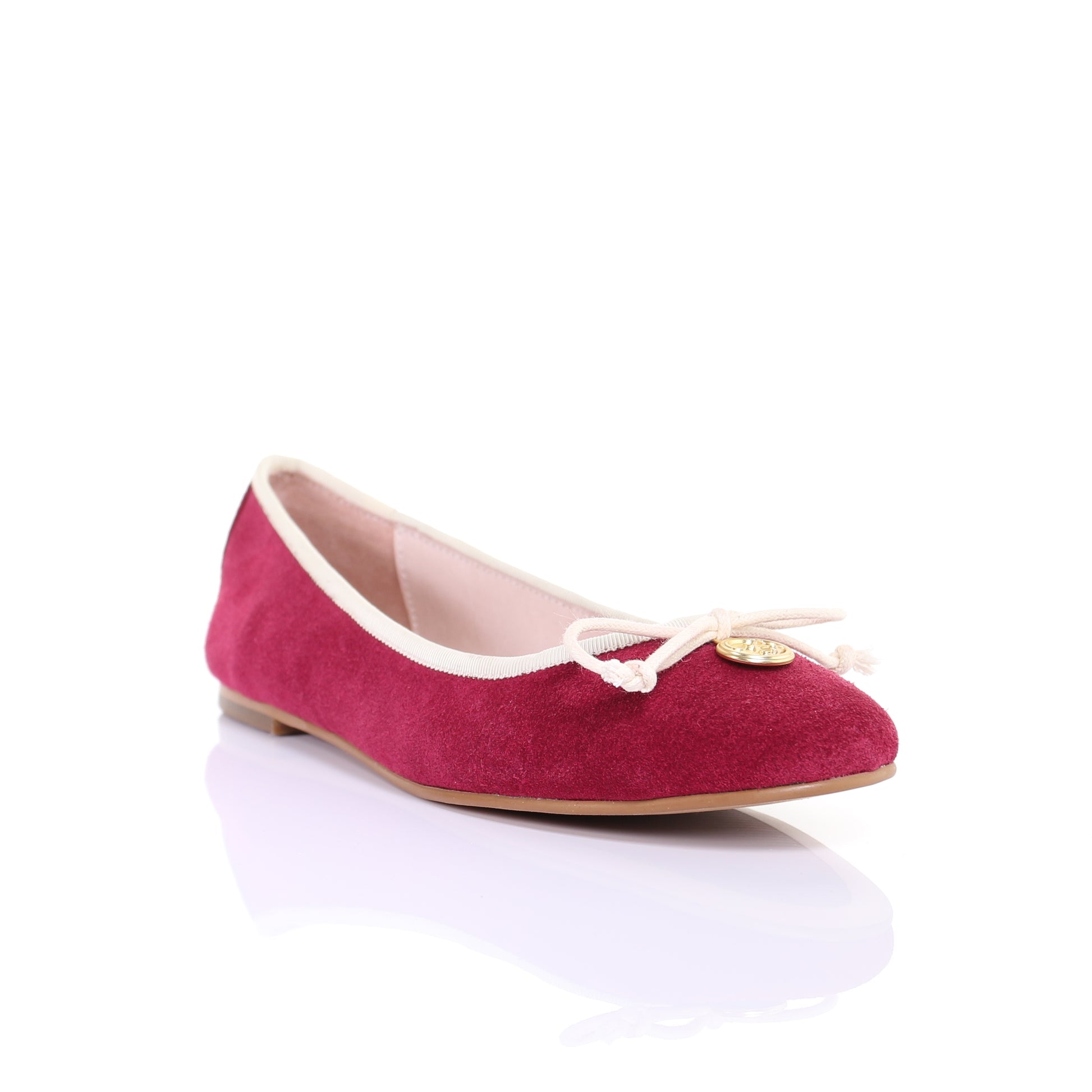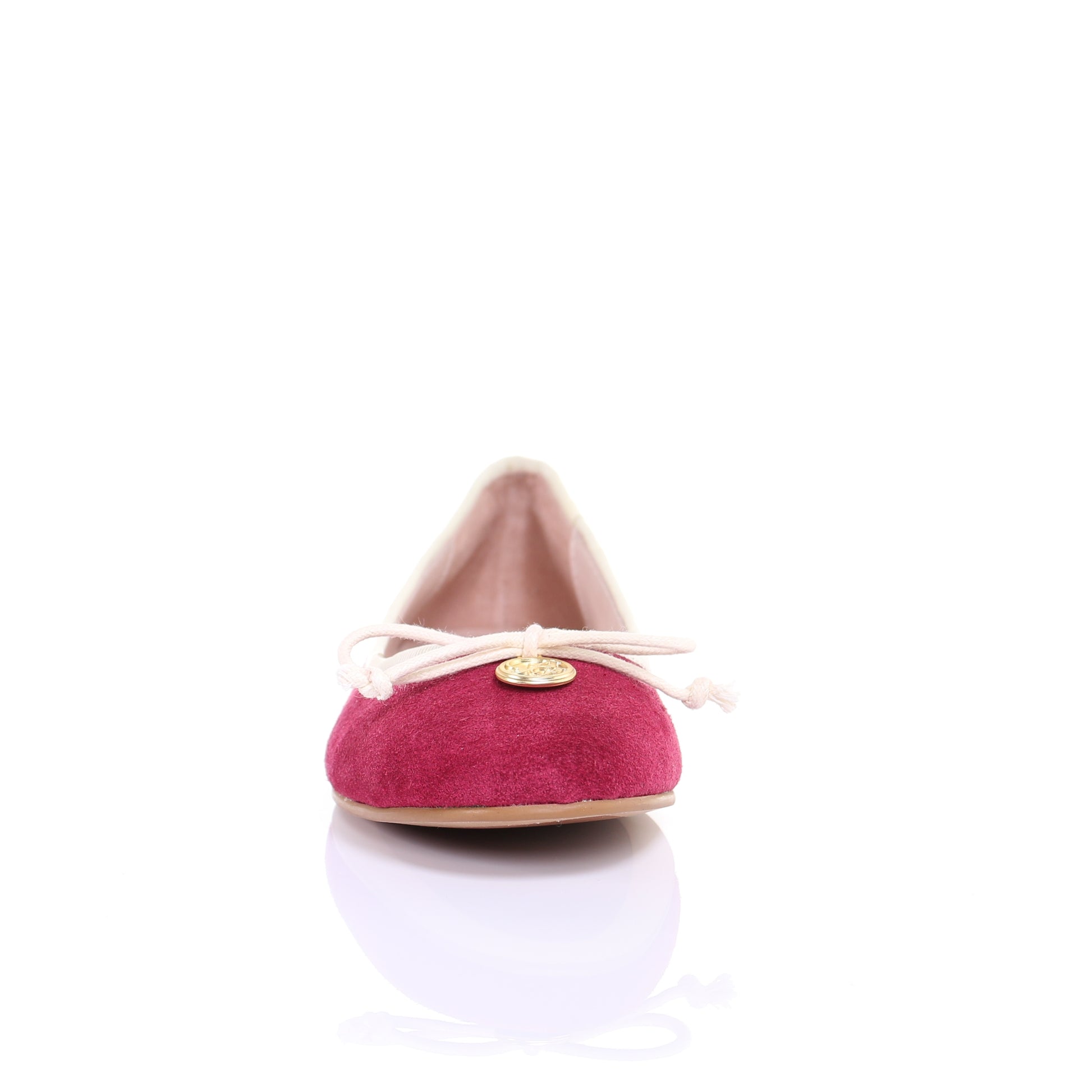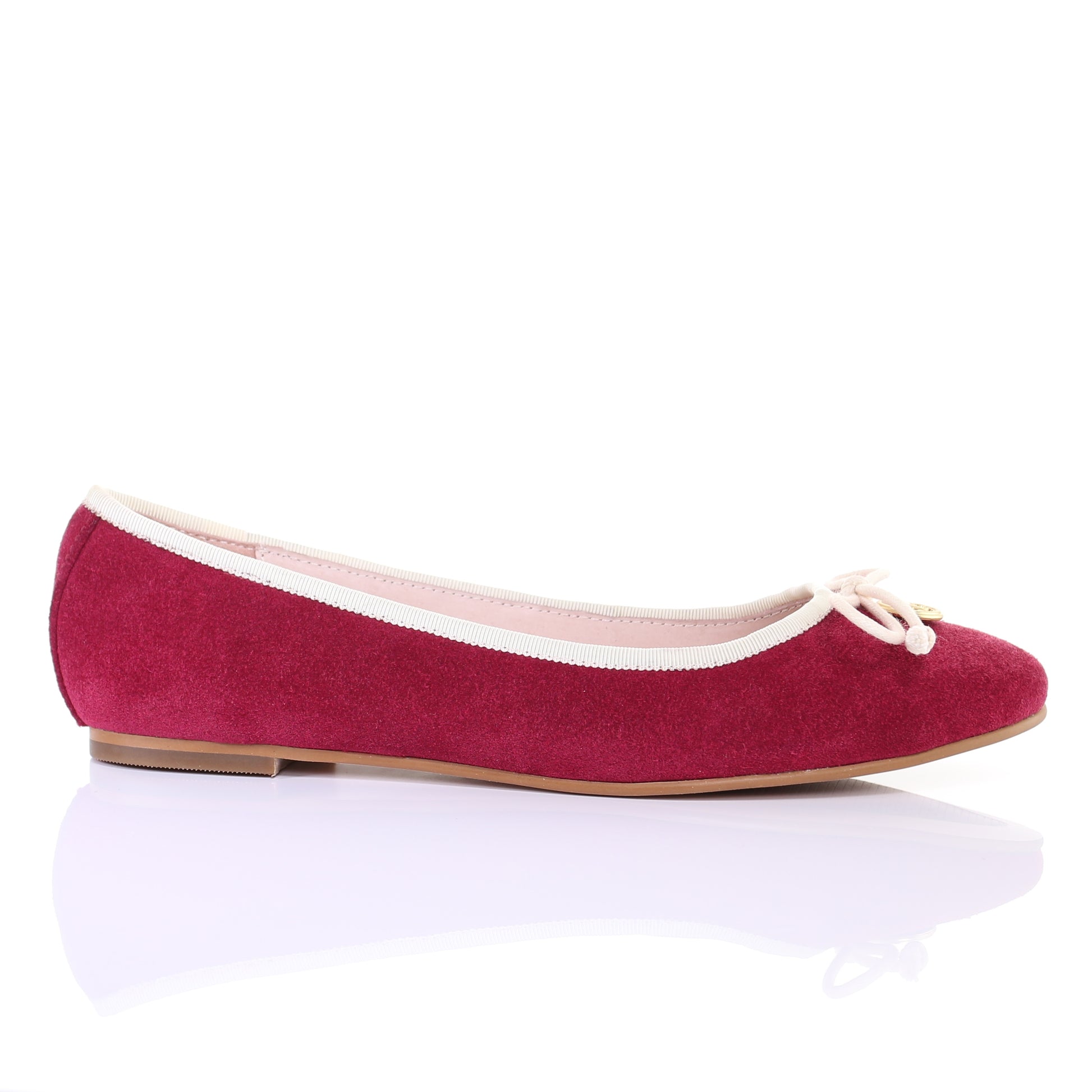 蝴蝶結絨面革芭蕾舞鞋(洋紅色)