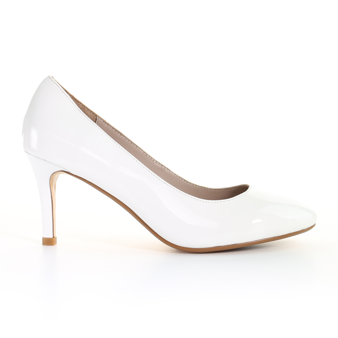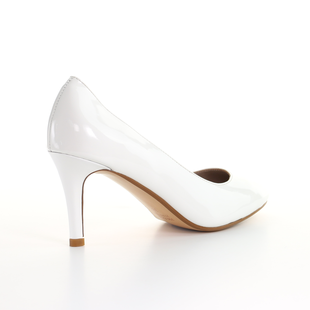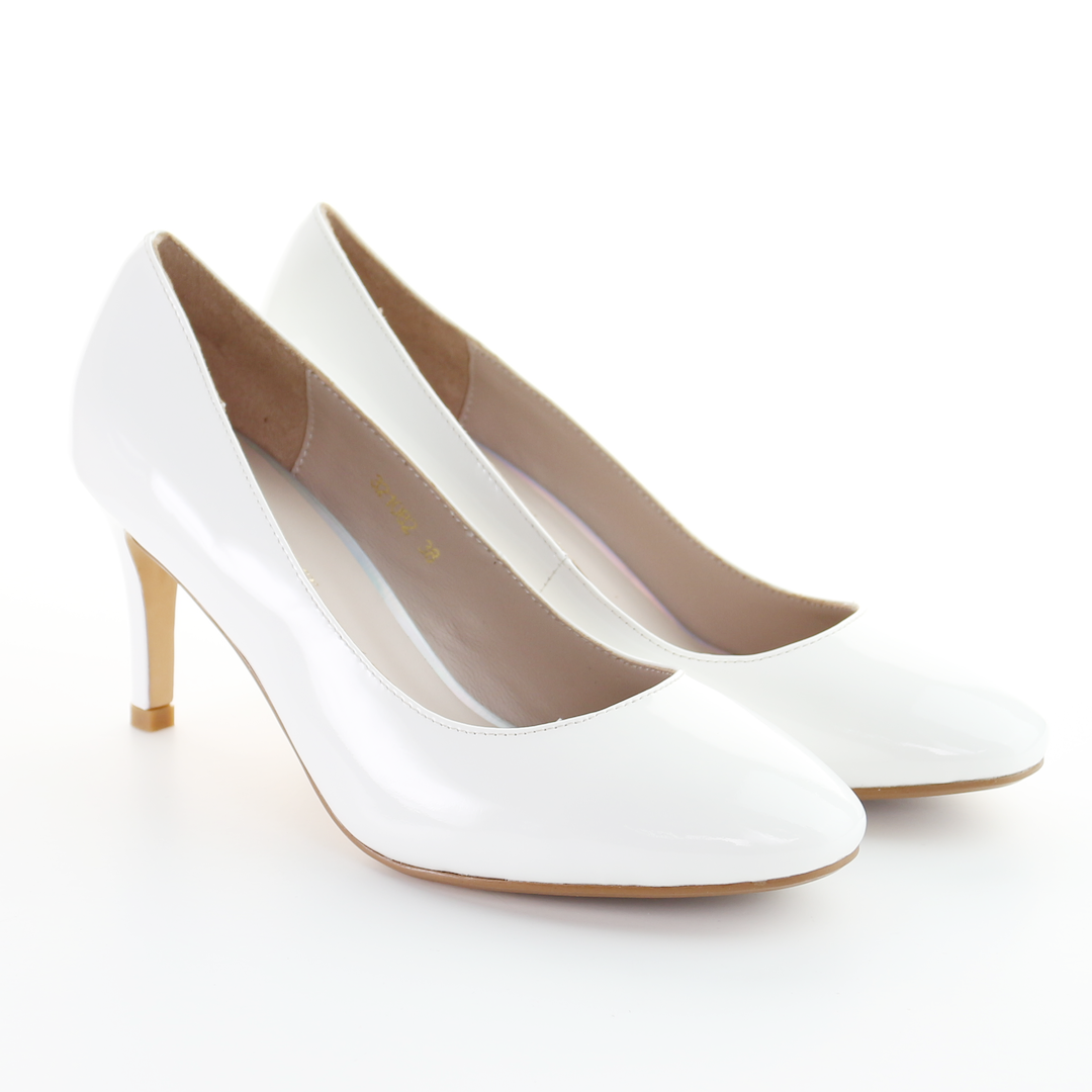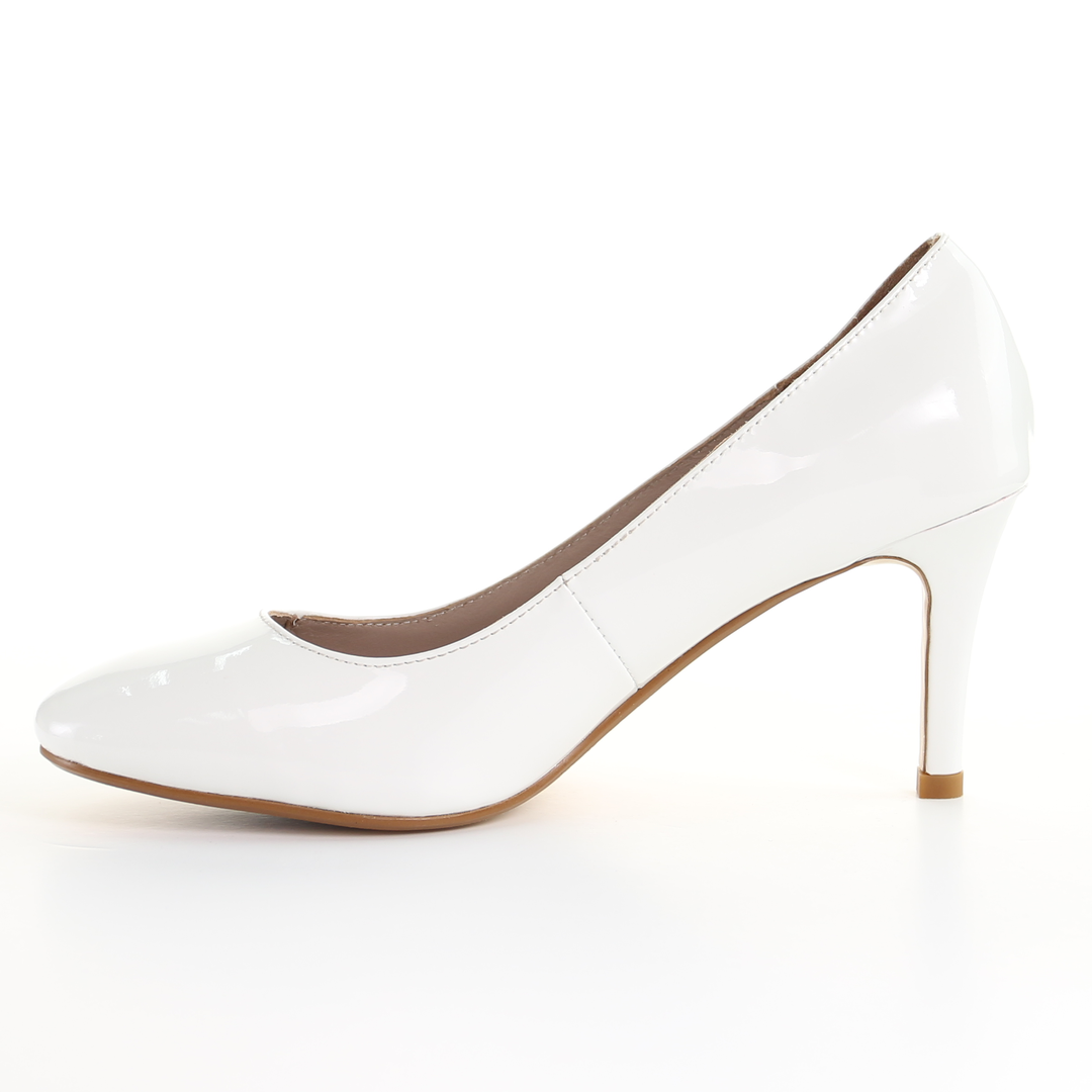 漆皮 8cm 細跟圓頭淺口鞋-白色