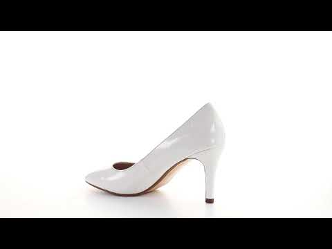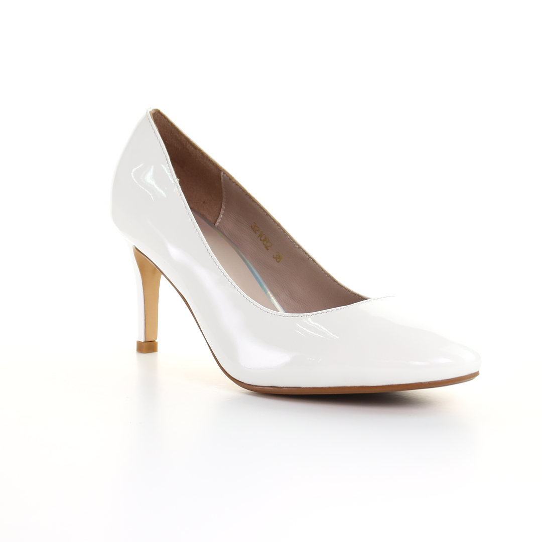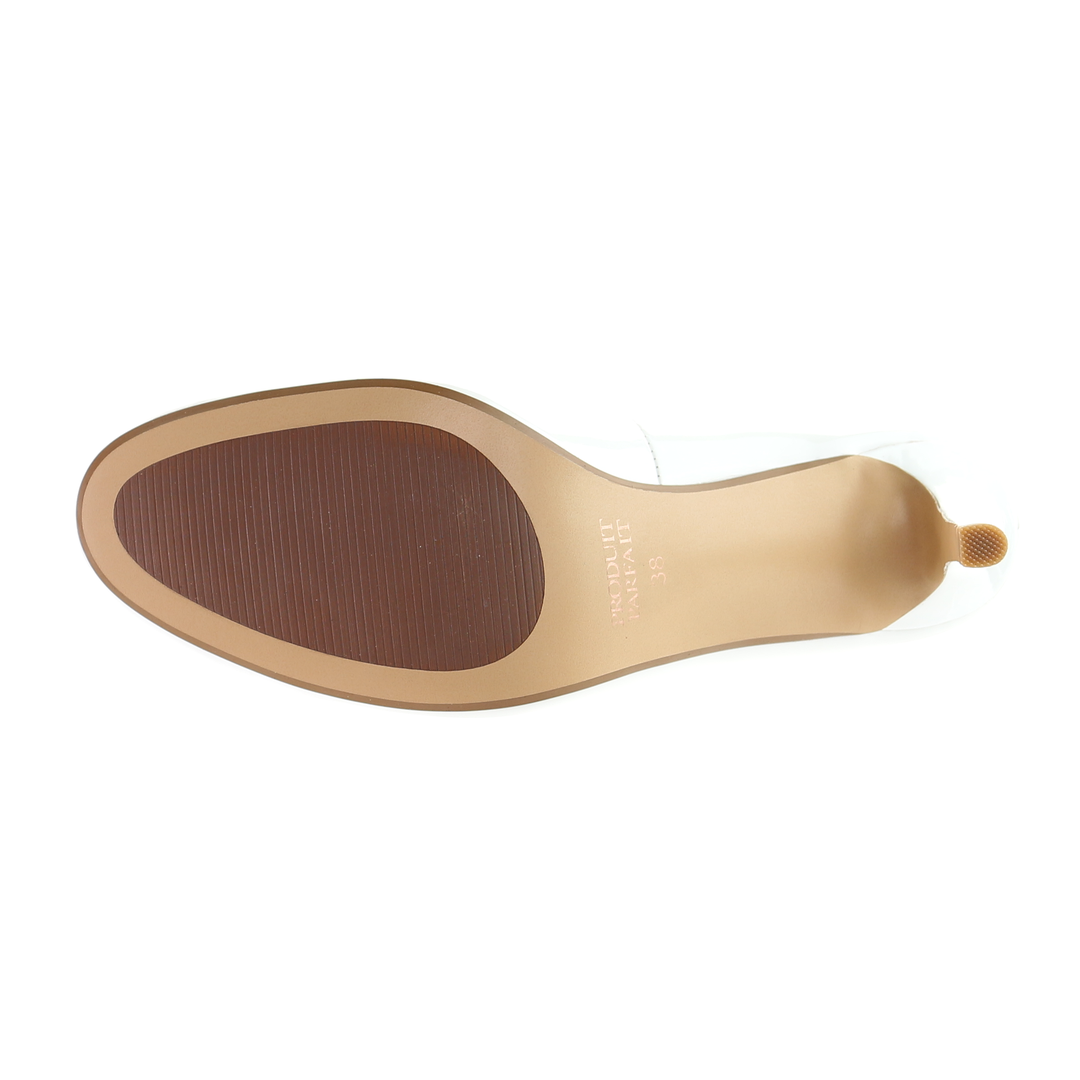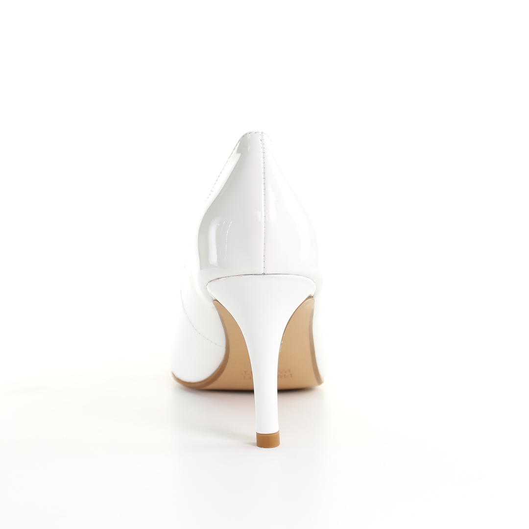 漆皮 8cm 細跟圓頭淺口鞋-白色