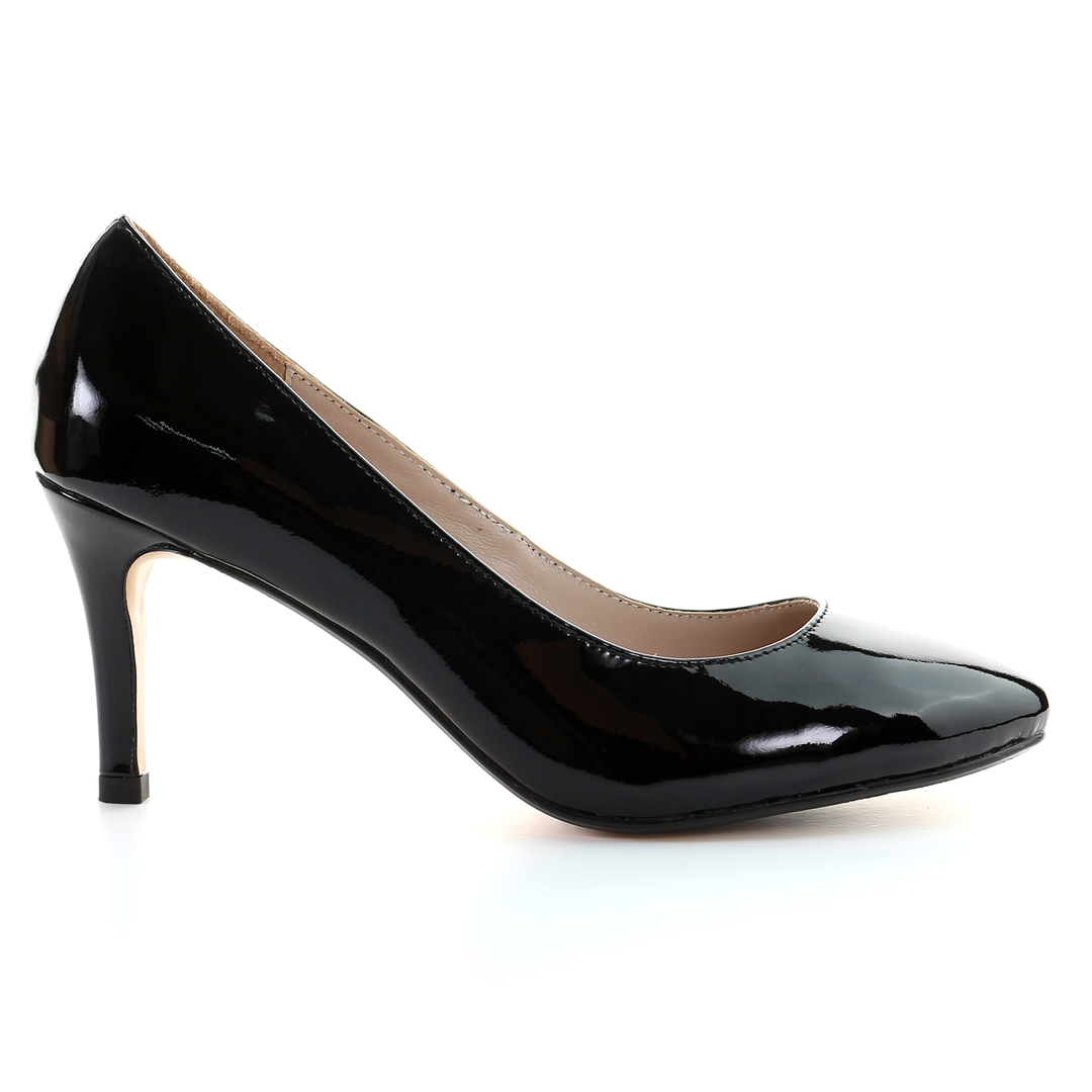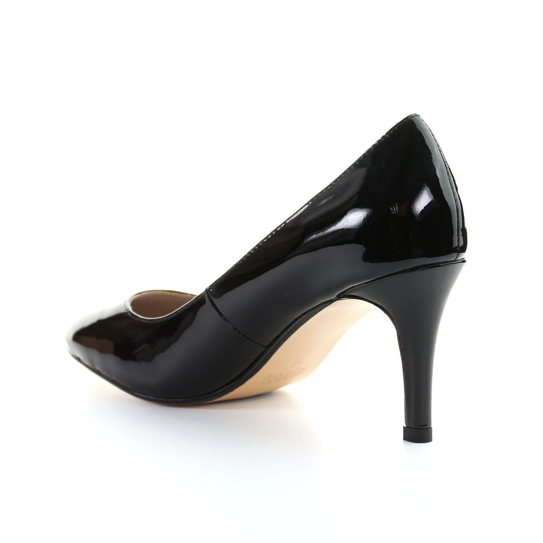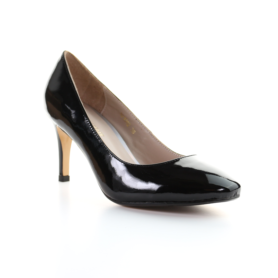 漆皮 8cm 針跟圓頭淺口鞋-黑色