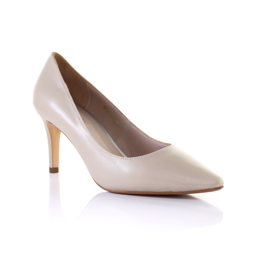 皮革 8cm 針跟尖頭淺口鞋 - 米色