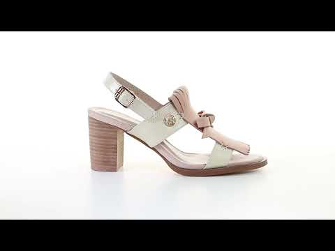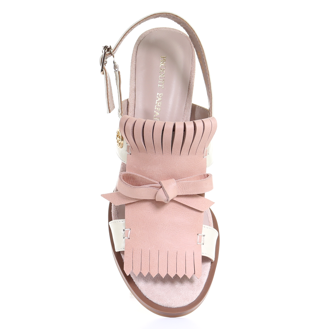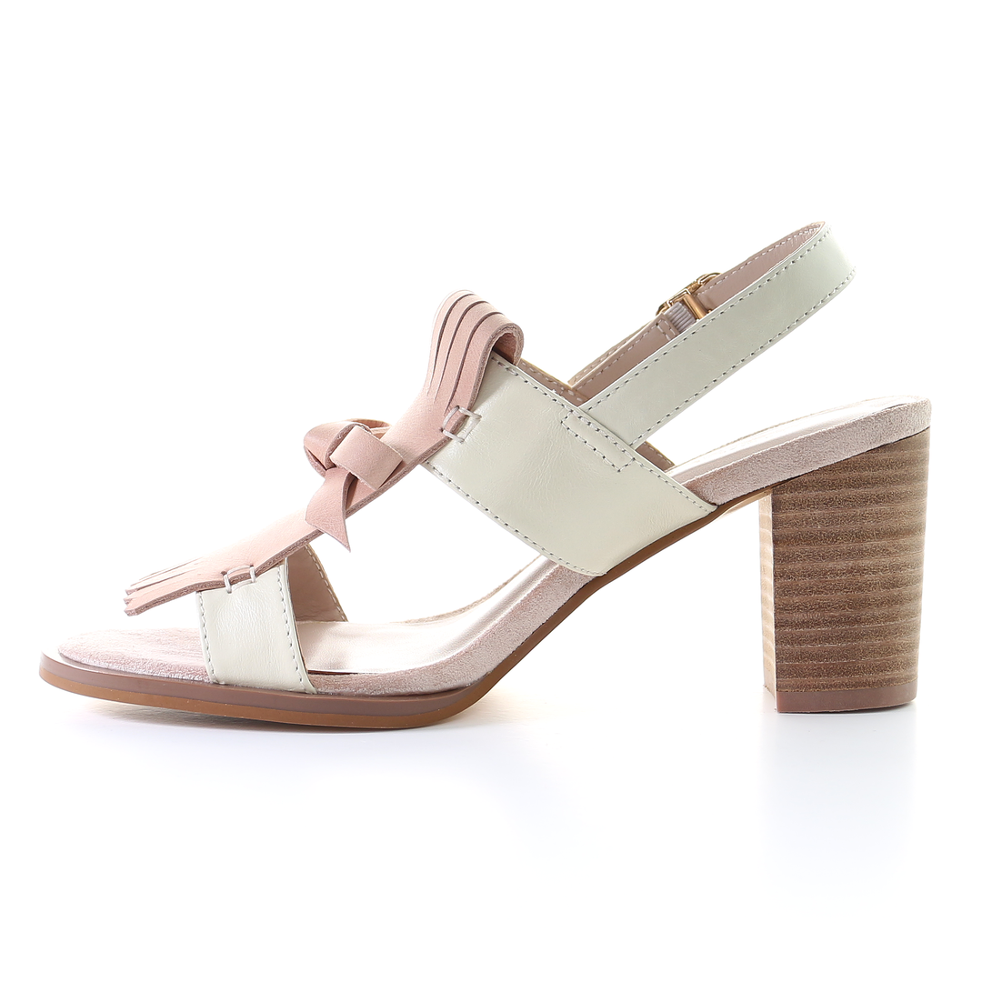 流蘇繫帶7.5cm粗跟涼鞋-粉色