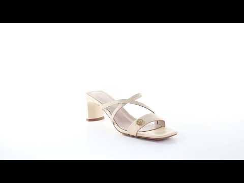 方頭皮革繫帶高跟涼鞋 - 象牙色
