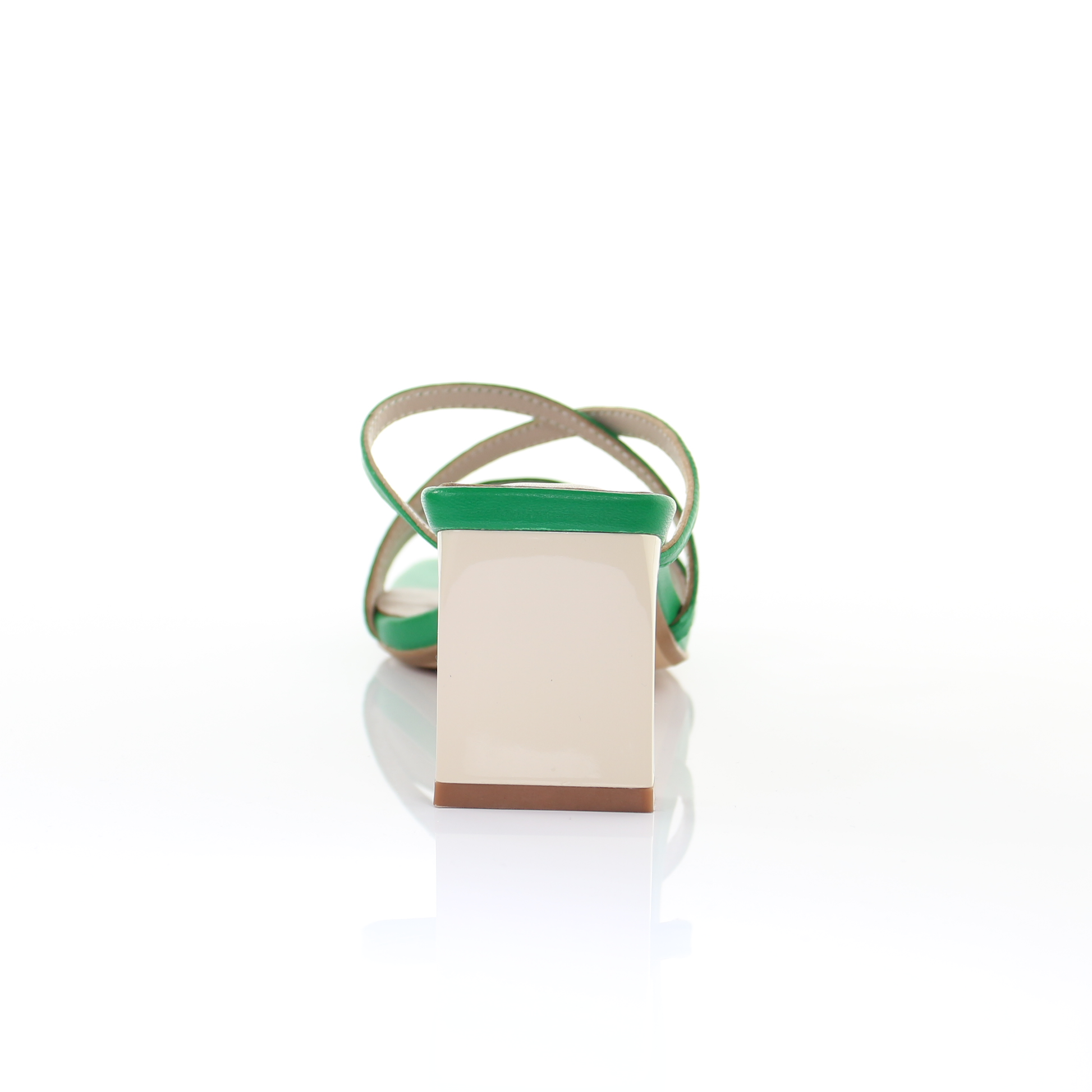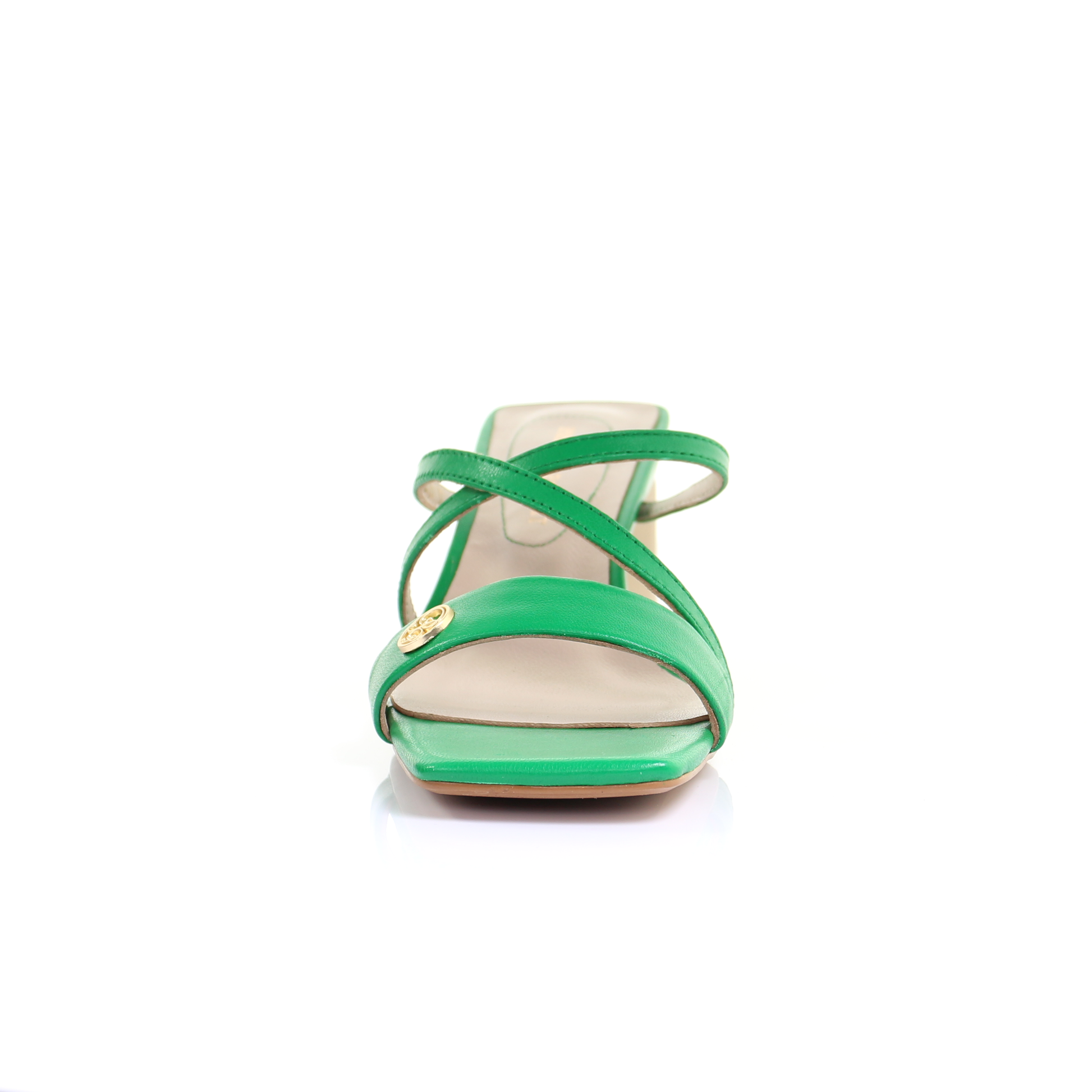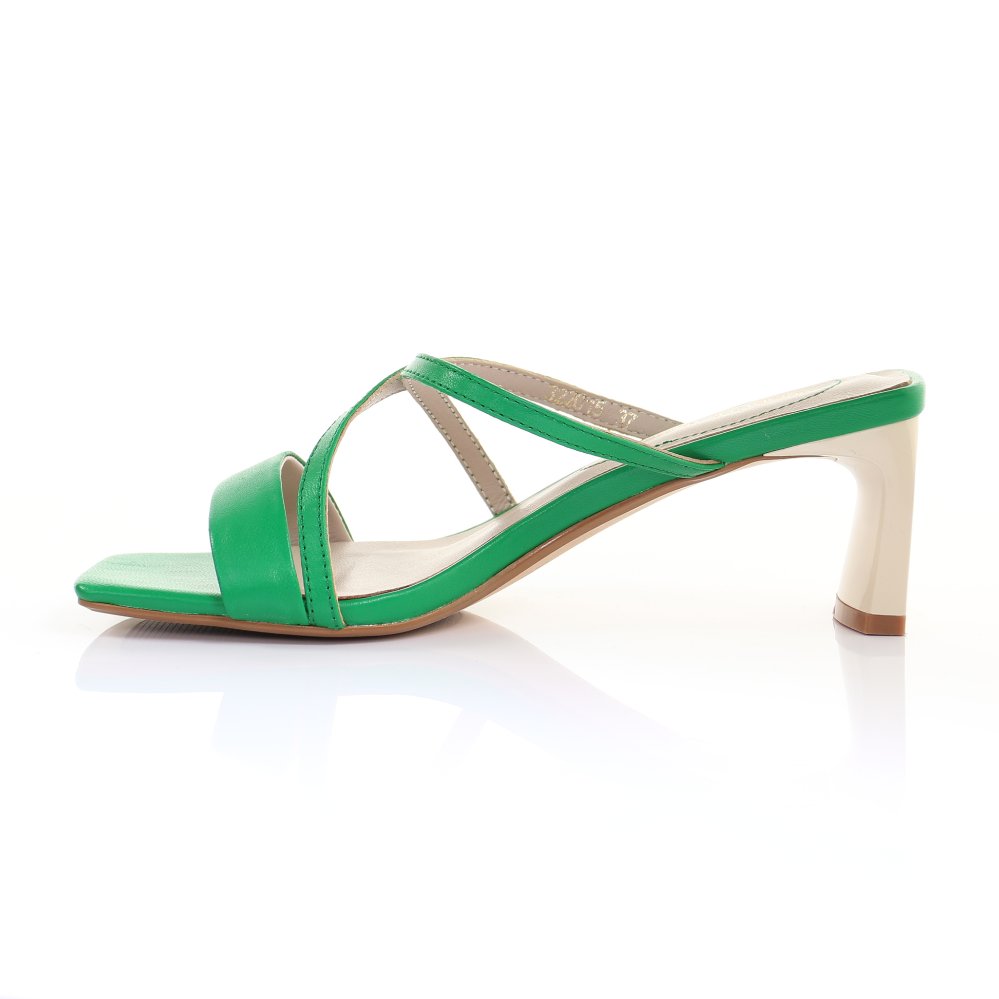 方頭皮革繫帶高跟涼鞋 - 綠色