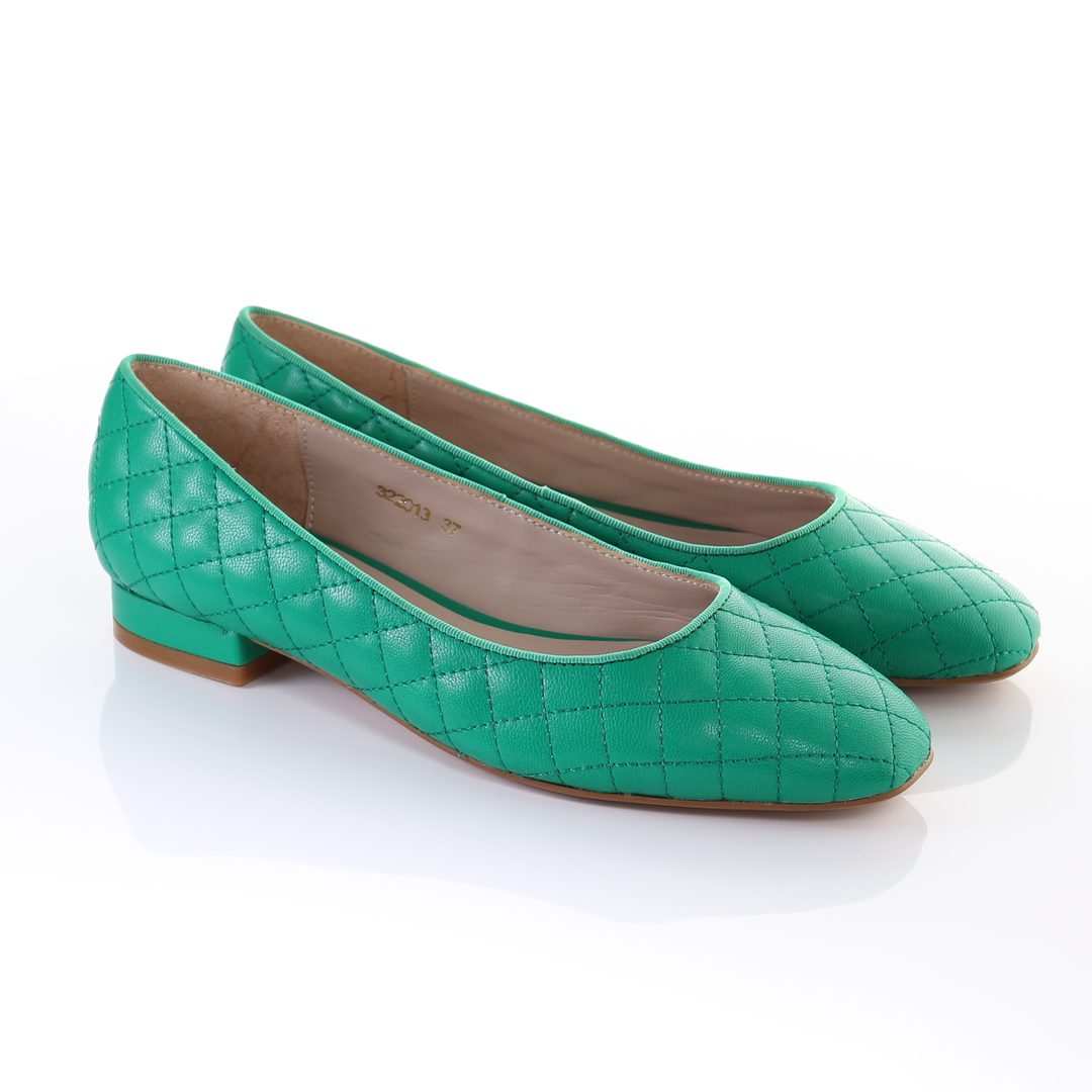 經典皮革方頭芭蕾舞鞋 -(綠色)