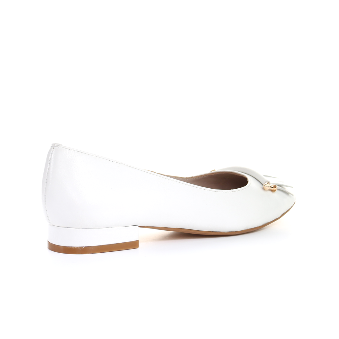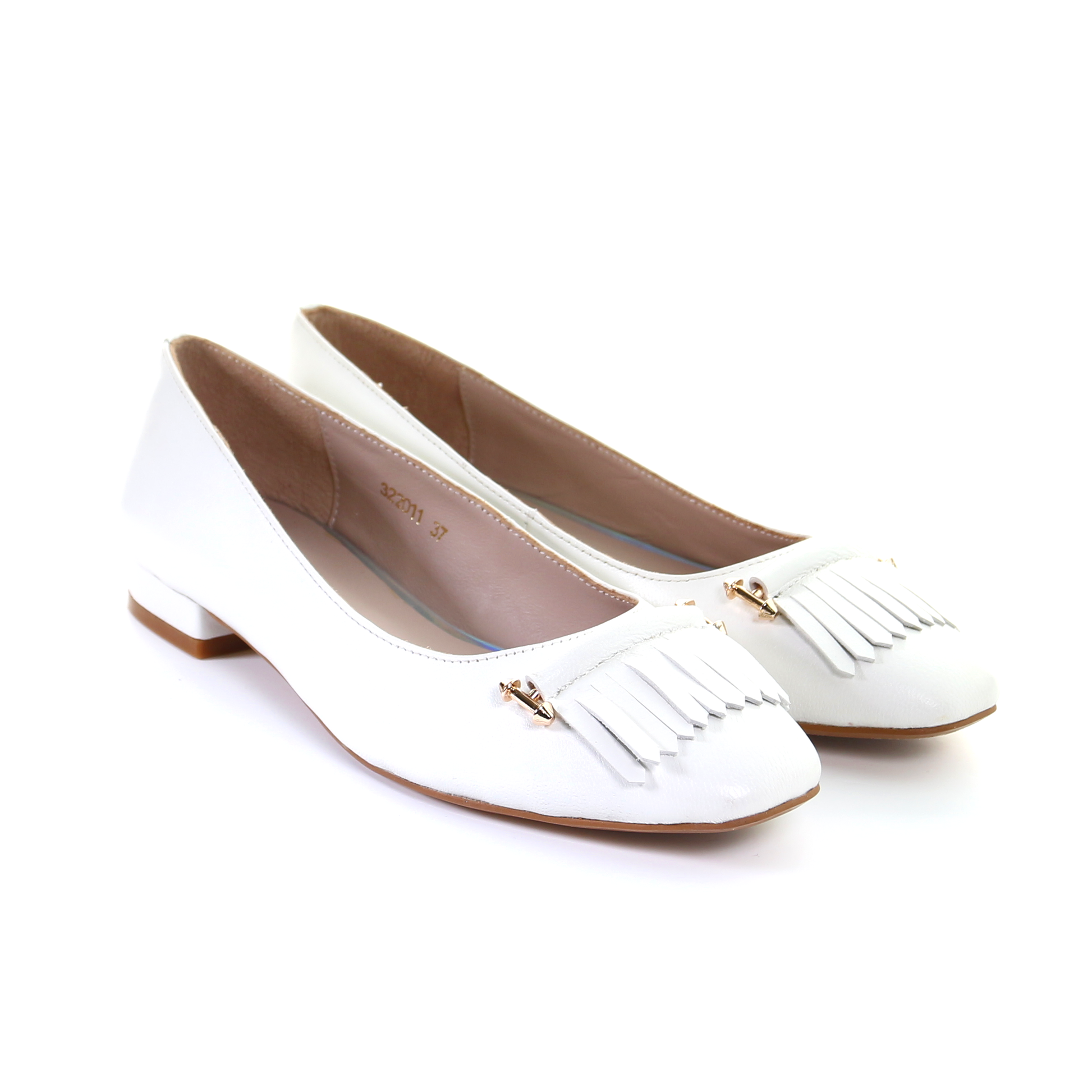 流蘇皮革方頭芭蕾舞鞋(白色)