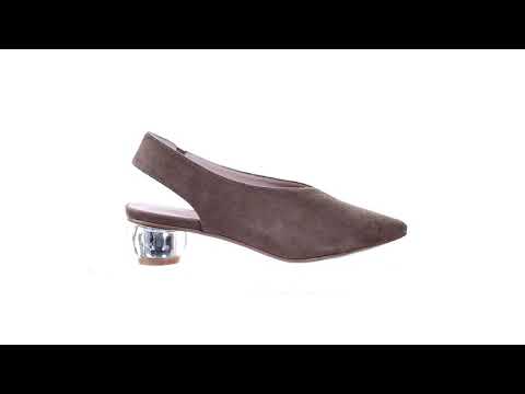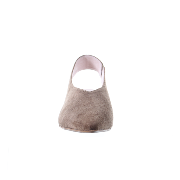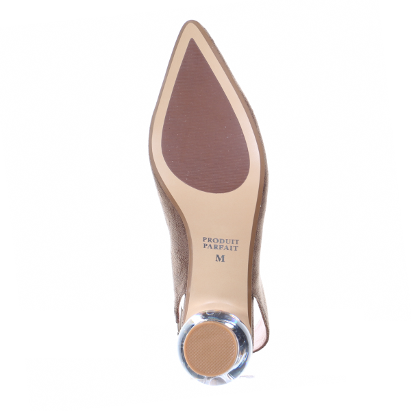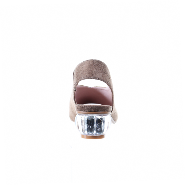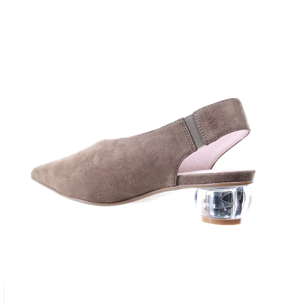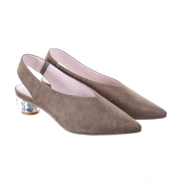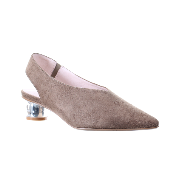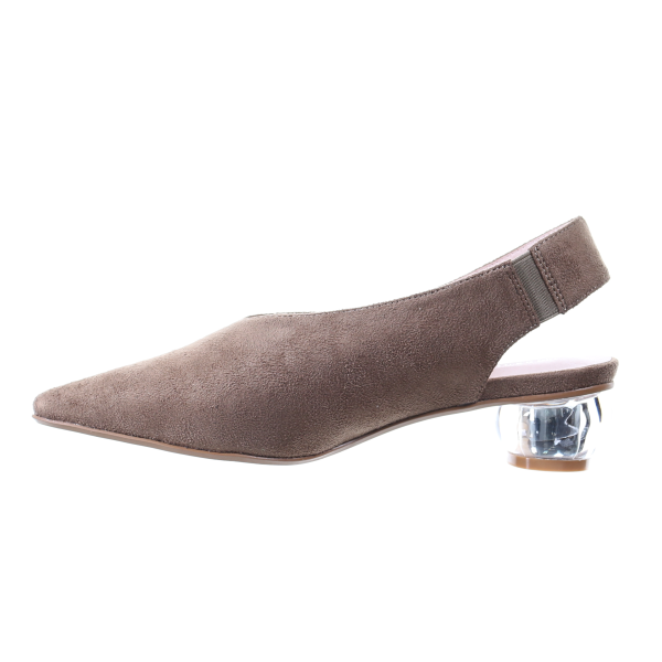 透明鞋跟絨面革尖頭淺口鞋(深米色)