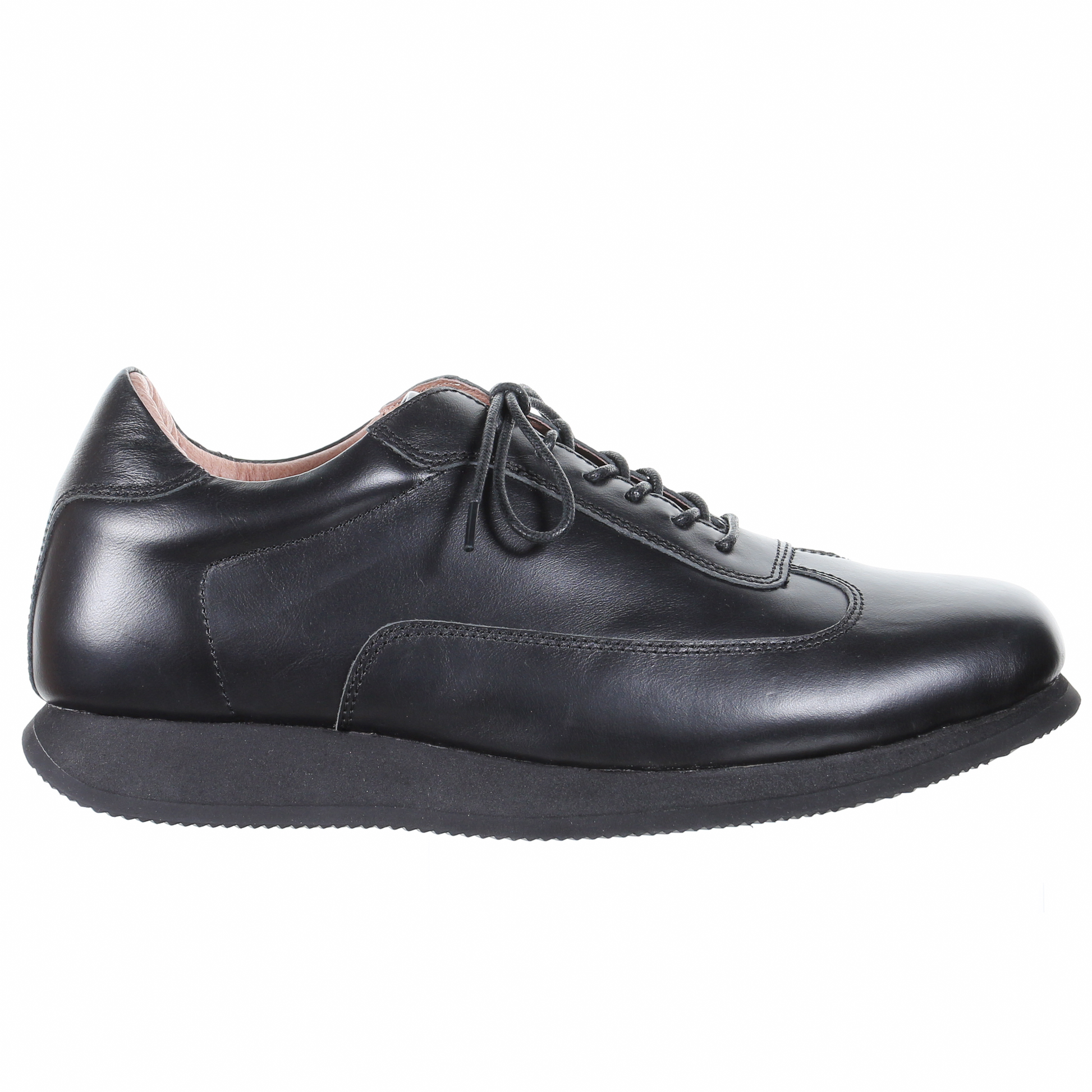 男式繫帶皮休閒鞋(黑色)